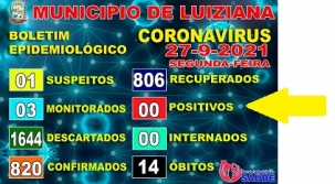 Não há, nesta segunda-feira, nenhum morador de Luiziana com o vírus ativo da covid-19. É o que mostra o boletim divulgado pela prefeitura. O município já teve 820 casos confirmados da doença, sendo que 806 se recuperaram e 14 morreram. Também estão "zerados" na região Boa Esperança, Farol, Quinta do Sol e Rancho Alegre do Oeste.