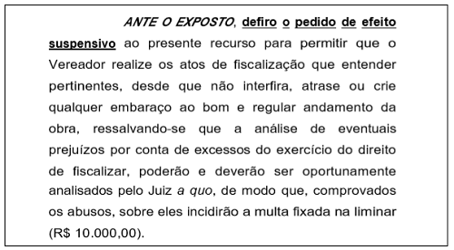 "Desde que não interfira, atrase ou crie qualquer embaraço ao bom e regular andamento da obra".