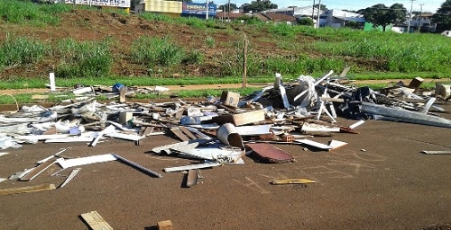 "Em uma rua próximo ao Muffato algumas pessoas não satisfeitas em jogarem seu lixo em terrenos baldios, também estão jogando os entulhos no meio da rua (rua Nair Machado Nogarolli)".