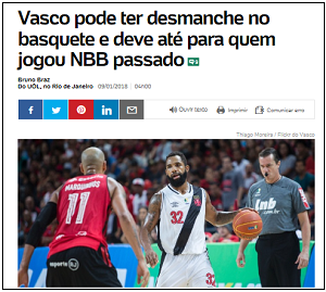 Jogadores de basquete do Vasco estão com salários atrasados.