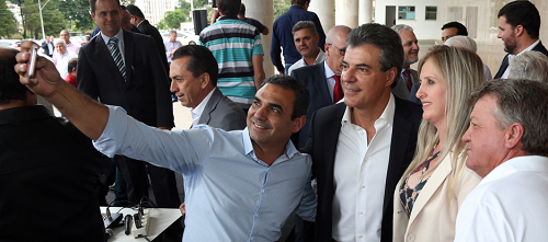 O governo do Estado fez nesta terça-feira solenidade para a entrega de 50 carros para 41 cidades. São veículos (VW Gol) para a Saúde. Sete municípios da região foram incluídos. Boa Esperança foi um deles, daí o motivo do prefeito Zé do Caixão fazer uma selfie com o governador Beto Richa.