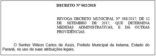 O prefeito de Iretama, Wilson Bratac, revogou na íntegra o decreto que previa uma série de medidas para contenção de despesas.