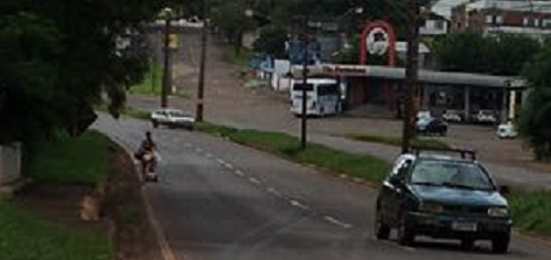 O Tio Patinhas, ao fundo, não deixa dúvidas. Essa aí é a av. Miguel Luiz Pereira. Agora, veja só onde a mulher anda com o carrinbo de bebê. No meio da pista, onde carros passam em alta velocidade. Culpa da dela? Não! A mãe não tinha outra alternativa. Detalhe: o local é caminho de pedestres, principalmnete de estudantes da UTFPR.