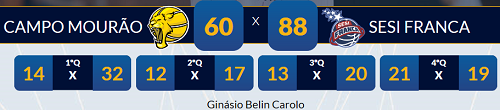 Como foi? - Franca abriu 18 pontos no primeiro quarto, cinco no segundo e sete no terceiro. Chegou ao quarto final 30 pontos à frente (69 a 39). Aí o time da casa até ganhou por dois pontinhos. Próximo jogo segunda-feira (20h15), de novo no Ginasião, contra o campeão Bauru/SP.