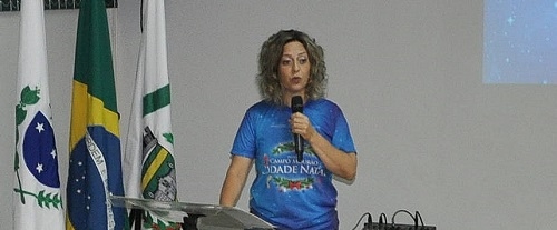 Edilaine Maria de Castro, da Associação Sou Arte, ao prestar contas do projeto "Campo Mourão Cidade Natal", nesta sexta-feira, na prefeitura.