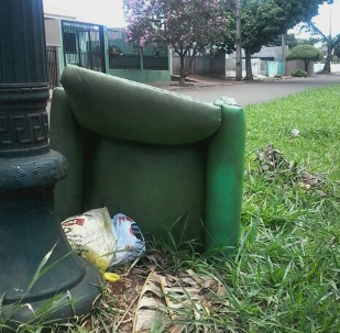 Sofá - Vende-se. Poltrona com um só lugar, a cor verde. Está meio torto, mas com estofamento inteiro. Interessados procurar no canteiro central da av. Jorge Walter.