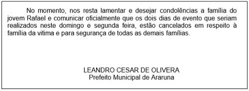 Em "Nota oficial", Leandro disse que medidas de segurança tinham sido tomadas e lamentou o crime.