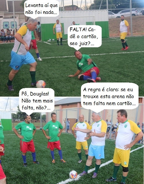 Os cliques são de Guairaçá, onde o secretário de Estado Douglas Fabrício (Esporte e Turismo) foi sexta-feira inauguar uma mini arena multiuso. O prefeito Elson Greb também entrou em quadra para o jogo inaugural. E teve falta? Claro que não. Como diriia o narrador Milton Leite, "siga la pelota"...