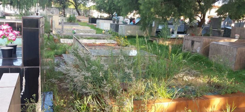 A prefeitura de Campo Mourão promoveu mutirão para limpeza e roçada no Cemitério Municipal. O "campo santo" tava dominado pelo mato. Parte da culpa foi atribuída a São Pedro, devido ao excesso de chuvas em janeiro. Só que o santo não está sozinho nessa, não. A prefeitura colaborou desde o ano passado com a redução de funcionários no cemitério, com o agravante que eles estavam em férias em janeiro. Ai-aiai-aiai! Morador de cemitério não vota, mas pode dar uma puxadinho no pé à noite, não pode?...