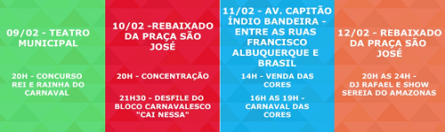Quem não tem agência de publicidade se vira como pode. A prefeitura de Campo Mourão está divulgando em seu site o "Carnaval Animal". Começa nesta sexta-feira (20h), no Teatro Municipal, com concurso para escolha do rei e da rainha. No sábado (21h30) o bloco Cai Nessa desfila praça São José. No domingo (16h) em Carnaval de Cores, promovido pelo Cai Nessa. A festança termina na segunda-feira (20h), com DJ Rafael e show Sereia do Amazonas na praça central.