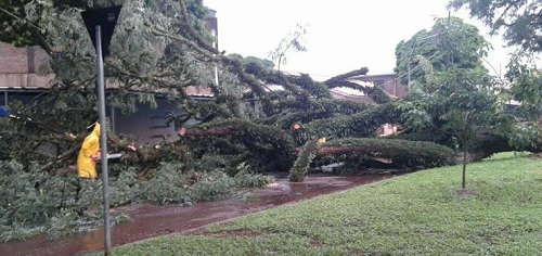Primeiro dia útil do ano de muito trabalho para o pessoal da Secretaria de Serviços Urbanos de Ubiratã. Um temporal durante a madrugada desta terça-feira derrubou árvores por todos os cantos da cidade. A prioridade está sendo a retirada daquelas que interditaram ruas e avenidas, com essa aí da foto.