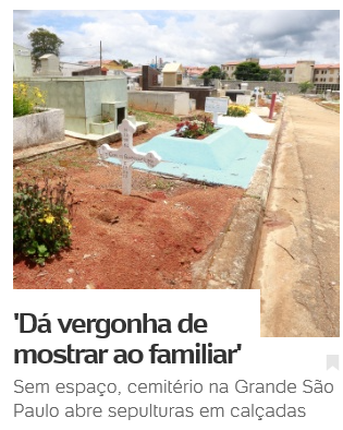 Os portais UOL e G1 destacaram, nesta quarta-feira a saída encontrada para o cemitério lotado de Mogi das Cruzes/SP.