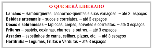 A taxa para venda de alimentos varia de R$ 475,50 a R$ 570,6, de acordo com o tamanho da barraca.