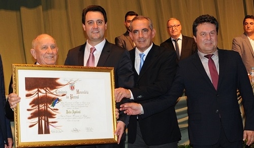 João Apoloni, ao receber o título de Cidadão Honorário do Paraná; quinta-feira.
