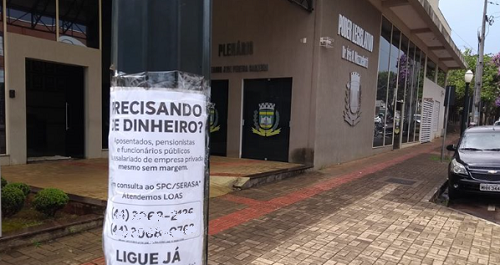 "Precisando de dinheiro? Mas precisava usar o poste? Nem o poste republicano em frente à Câmara de Vereadores escapou da panfletagem. Não pode, né? E fica feio..."