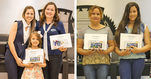 Cada uma recebeu um tablet, assim como suas professoras - Neidilene dos Reis Padilha e Marciane Aleixo Baretta.