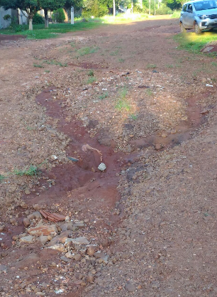 "Algumas das ruas "pavimentada" do jardim Santa Cruz,quando chove fica uma beleza. Na campanha tinha promessa.Será que dessa vez vai?"