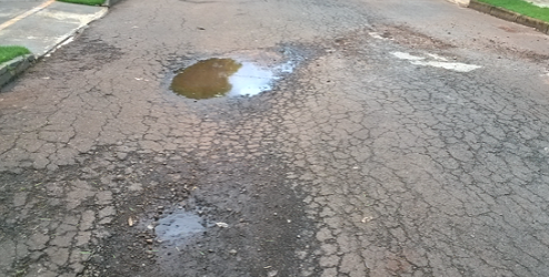 "Foto da rua onde moro (rua José Teodoro de Oliveira, no jardim Flórida), próximo ao Espaço Saúde da Unimed. O recape passou pelo bairro, mas a rua onde moro ficou de fora. E daqui uns dias chega o carnê do IPTU. Será que vai ter desconto?"