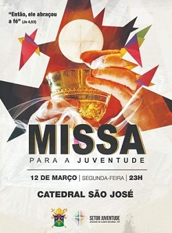 A Catedral São José realiza nesta segunda-feira (23h) a missa para juventude.
