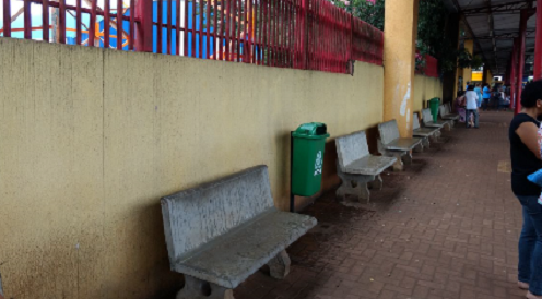 "Tirei esta foto no terminal urbano, sexta-feira, para mostrar que quando chove ninguém tem lugar para sentar. Os usuários ficam de pé esperando o transporte".