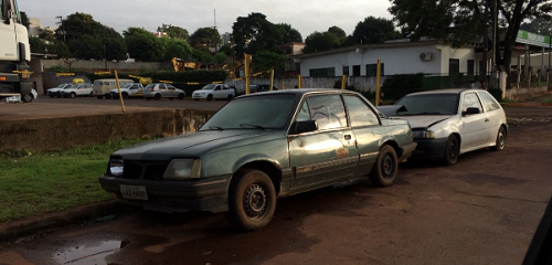 Carros "abandonados" em rua próxima à lanchonete Tio Patinhas. Como a rua Mamborê virou mão única a presença desses carros atrapalha nos horários de pico.