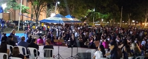 Apesar da ameaça de chuva, um bom público compareceu neste sábado à noite à praça São José, em Campo Mourão. Foi para comemorar o Dia Municipal do Evangélico. Mais de 10 igrejas participaram. Os vereadores Edilson Martins (autor do projeto), Olivino Custódio e Sidnei Jardim passaram por lá, assim como o prefeito Tauillo Tezelli e o deputado Douglas Fabrício.