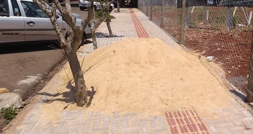 Na rua Interventor Manoel Ribas, a calçada nova, de pêiver, ficou ótima. Pena que esqueceram o resto de areia no meio do caminho. Já faz mais de 15 dias...