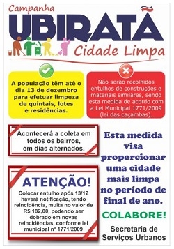 Detalhe: quem colocar entulho após o dia 13 será notificado e poderá levar multa de R$ 182.