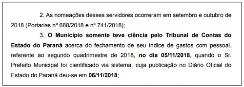 Na sessão de segunda-feira, ele disse que o município estava impedido de contratar naquele momento, por isso foi ilegal.