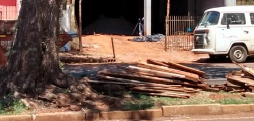 "Após 48 horas de um trabalho voluntário exemplar, nem finalizamos a coleta de todo material , surge na av. Goioerê uma situação dessa. Além do entulho ainda danificaram a muda de árvore recém plantada".