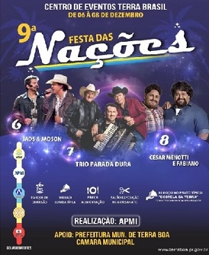 A prefeitura de Terra Boa divulgou a programação da 9ª Festa das Nações.