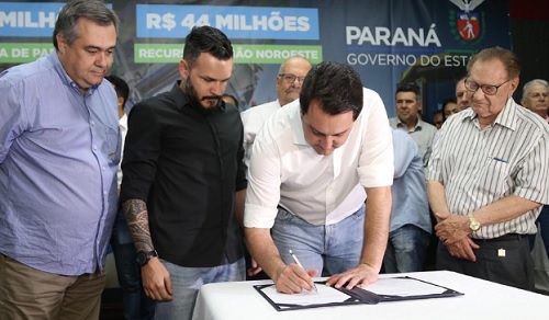 O governador Ratinho Jr esteve nesta quinta-feira em Paranavaí. Entre outras coisas, anunciou R$ 19,7 milhões (financiados) para asfalto em seis cidades. Uma delas é Campina da Lagoa, que ficará com R$ 1,2 milhão. O prefeito Milton Luiz Alves foi o único da região a participar do evento. O secretário de Estado Márcio Nunes (Desenvolvimento Sustentável) também estava lá.