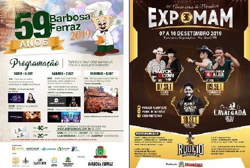 Em Barbosa Ferraz a programação no Centro de E/ventos inclui shows com entrada franca. No domingo será servido no almoço o prato típico Porco Garantido (convite a R$ 40).