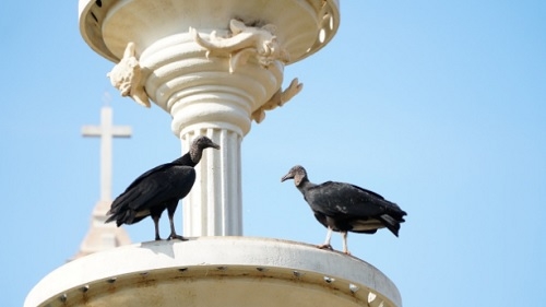 Urubus no chafariz da praça Getúlio Vargas, no centro de Campo Mourão. Irineu Ricardo