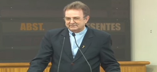 D. Anuar Battisti, arcebispo de Maringá, ao discursar na sessão solene que entregou o título de Cidadão Honorário de Maringá ao bispo de Campo Mourão, D. Bruno Versari; sexta-feira.