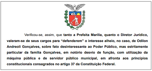 A promotoria quer a perda da função pública da prefeita e do diretor jurídico, além do pagamento de dano moral de R$ 115 mil.