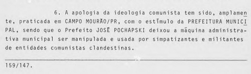 Para a ditadura militar, o prefeito José Pochapski (83/88) estimulava o comunismo em Campo Mourão.