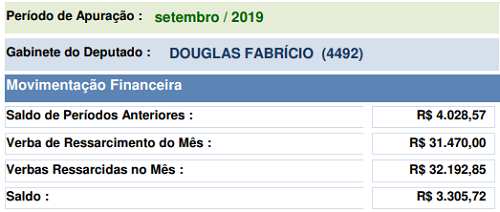 Saiu o relatório de gastos dos deputados estaduais em setembro. Douglas Fabrício, de Campo Mourão, teve R$ 32,1 mil de despesas ressarcidas. Passou um pouco do limite de R$ 31,4 mil, mas sem problema, uma vez que ele tinha sobras de meses anteriores. Alias, Douglas abriu outubro com R$ 3,3 de sobras.