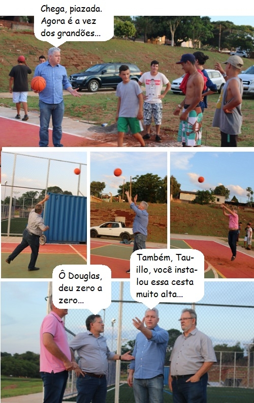 Os cliques são desta sexta-feira, quando o prefeito Tauillo Tezelli e o deputado Douglas Fabrício foram dar uma olhada na mini-arena multiuso que foi instalada no Parque das Torres. É a sexta dessas em Campo Mourão. Os vereadora Edson Battilani e Edilson Martins acompanharam. Tirando Tauillo, todo mundo se arriscou no basquete...