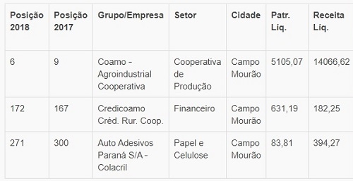 Três empresas de Campo Mourão estão entre as 500 maiores do Sul do País.