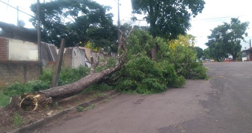 Rua Santa Cruz, quase na Perimetral. A árvore que caiu durante o vendaval continua sobre a calçada.