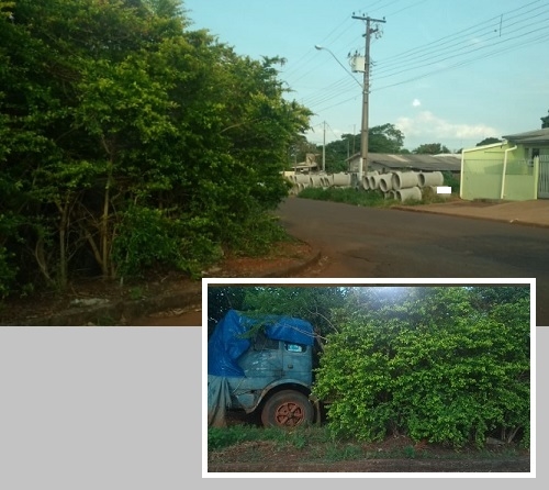 E olha o que se encontra no meio do "arbusto": um caminhão velho, coberto com lonas, favorecendo a proliferação do mosquito da dengue! Avenida Natureza, esquina com a rua Cardeal".