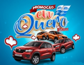 Acontece no próximo domingo os sorteios da promoção "Eu quero" do Paraná Supermercados. São quatro carros Renault Kwid 0 km e 21 vales compras de R$ 1 mil cada. Será um veículo para cada cidade - Campo Mourão, Cianorte, Goioerê e Ivaiporã - e três vale-compras por loja. A premiação soma cerca de R$ 150 mil. Os cupons serão distribuídos até sábado.