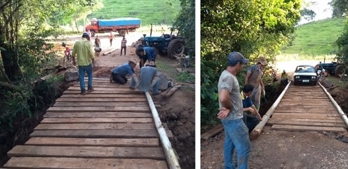 A comunidade da Água da Baliza, em Iretama, se reuniu a fez uma pinguela para que os moradores pudessem chegar até a BR-487. A ponte que existiu no local caiu.