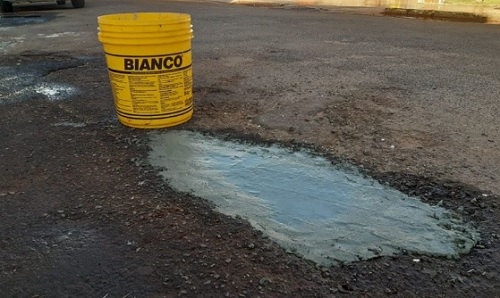 "Aqui na rua Pedro Gênero o jeito está sendo fazer tapa-buraco por conta própria. Com cimento. Não bastassem os bueiros entupidos, com água parada, agora também os buracos cada vez aumentam mais".