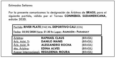 Uma mulher não era escalada em competições da Conmebol desde 2003.