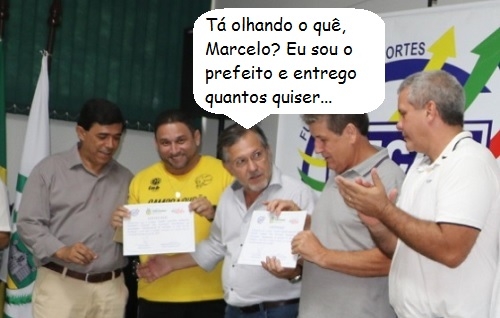 O clic é da entrega dos certificados para os 25 projetos aprovados para a Lei de Incentivo ao Esporte de Campo Mourão. Foi na prefeitura, com a presença do prefeito Tauillo Tezelli. Para este ano, serão R$ 1,3 milhão, proveniente de patrocínios de empresas e renúncia fiscal do município. O secretário Marcelo Lima (Esporte) e os vereadores Sidnei Jardim e Edoel Rocha também participaram.