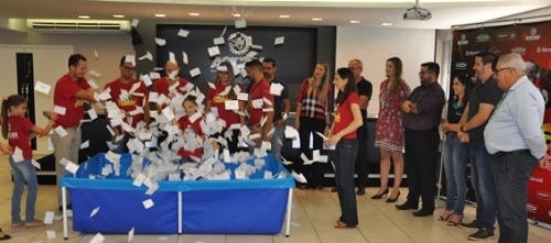 1) Sibelle Falbot Dayeh e Cristina Mendes dos Santos foram às ganhadoras dos dois celulares sorteados nesta sexta-feira pela campanha "Campo Mourão - Cidade Natal", da Acicam.
