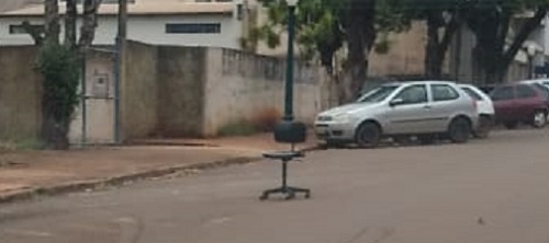 Quem disse que é difícil achar vaga para se estacionar no centro de Campo Mourão? Na rua Brasil até a cadeira encontrou uma...