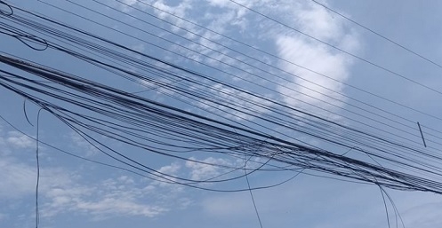 Fios em excesso em postes da rua Valdemar Faria, no jardim Botânico 2, em Campo Mourão.